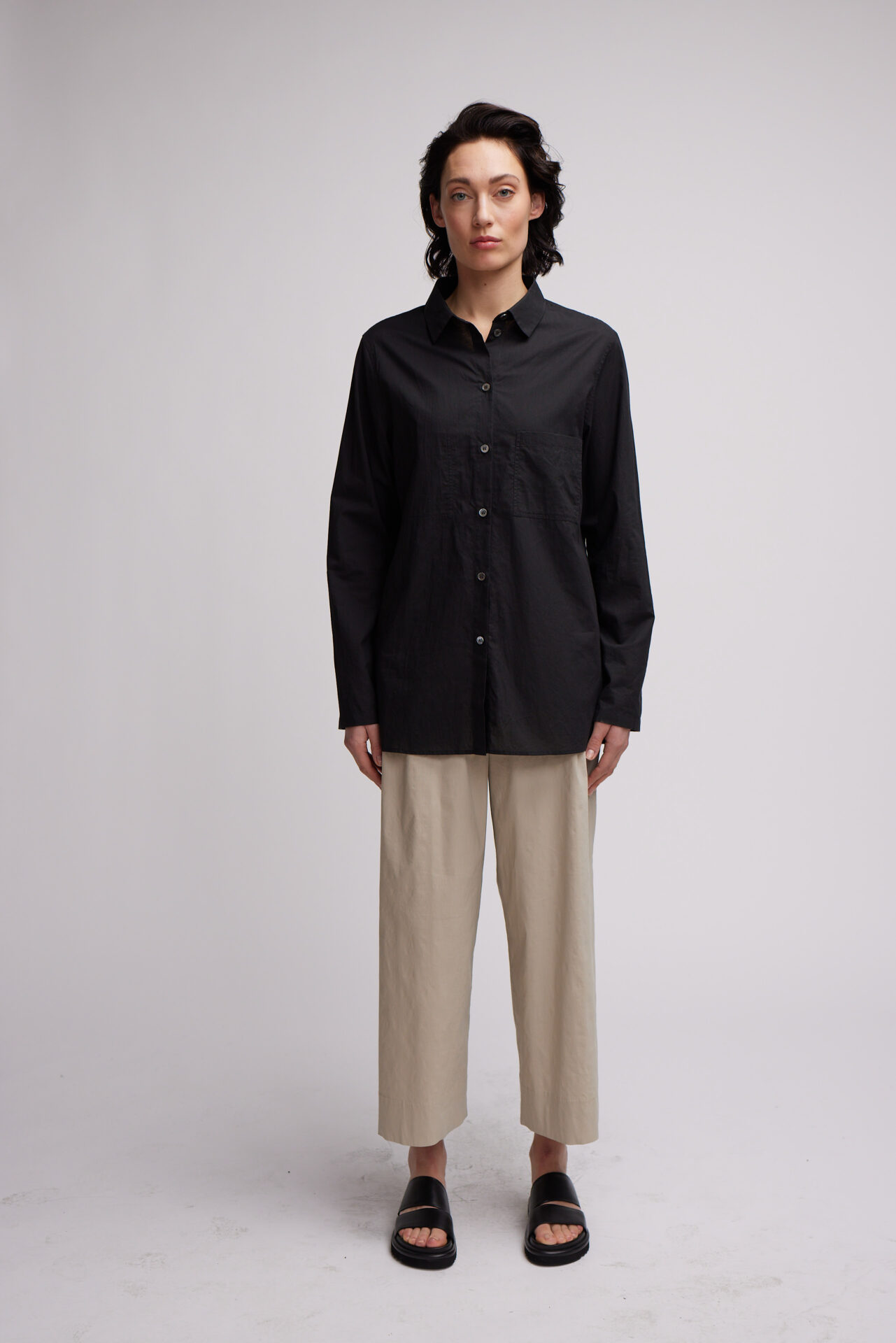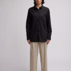 hemdbluse im menswear-stil aus feinem italienischem baumwollorganza. hemdkragen und lange ärmel mit leicht überschnittener schulter. aufgestzte brusttasche, auf dem anderem vorderteil untergesteppete Brusttsche.