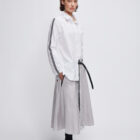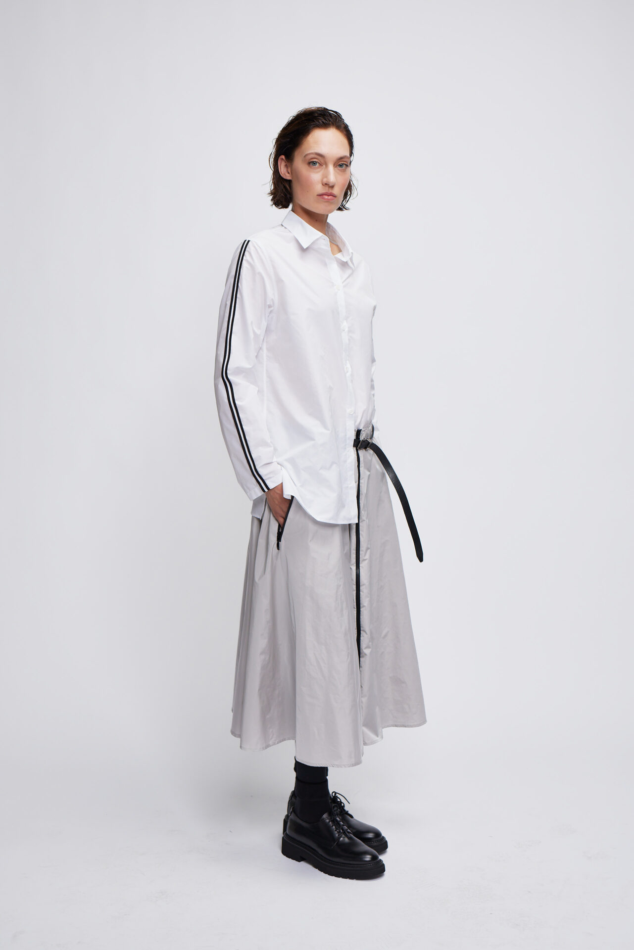 gerade geschnittene hemdbluse mit feinem doppelstreifen am ärmel aus hochwertigem italienischen Taft